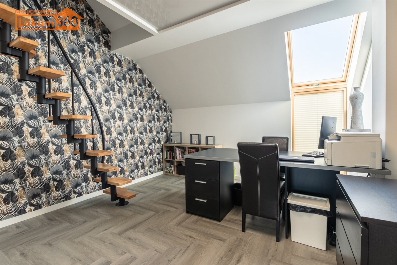 Dodatkowo: powierzchnia na poddaszu  użytkowa. na ten moment zaadoptowane na garderobę ale można  można zaadaptować np. na biuro, pokój hobby lub dodatkową sypialnię.