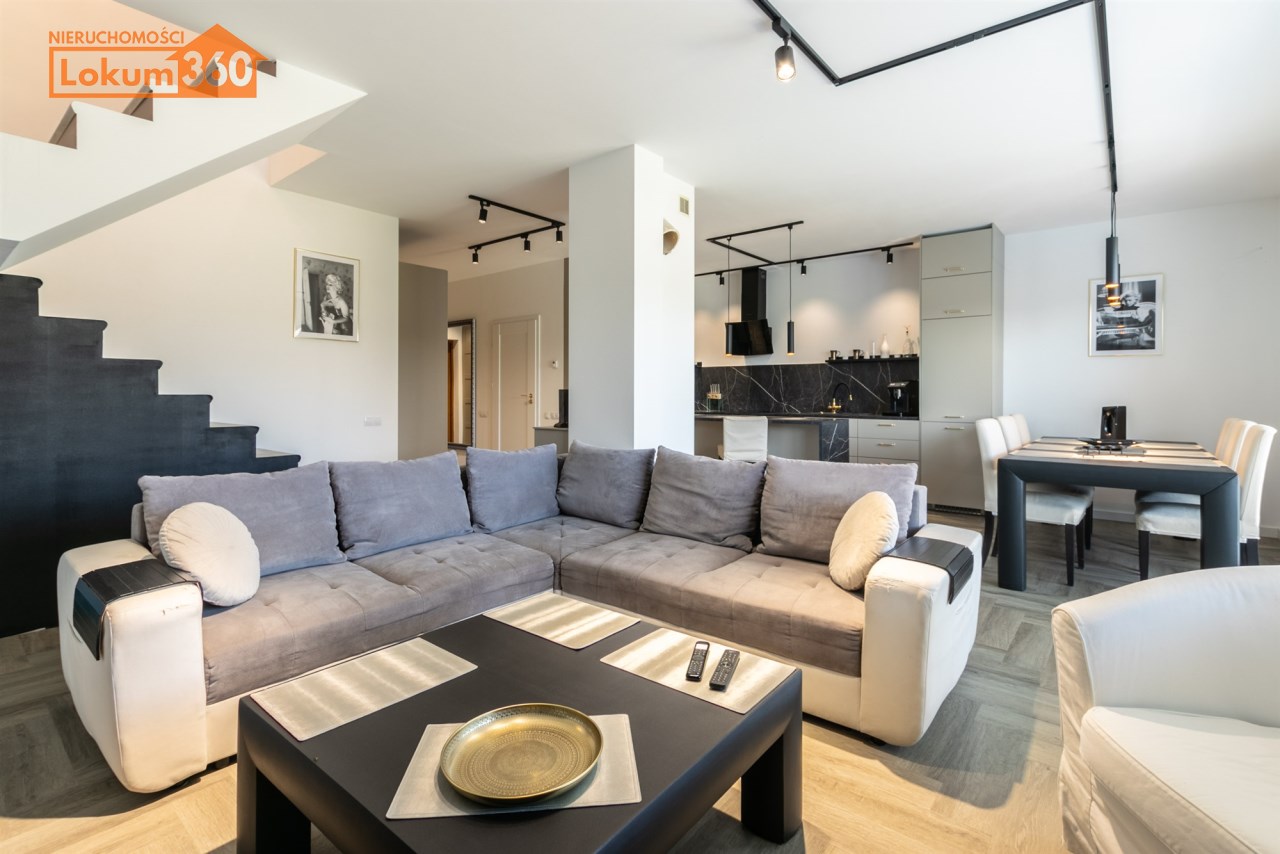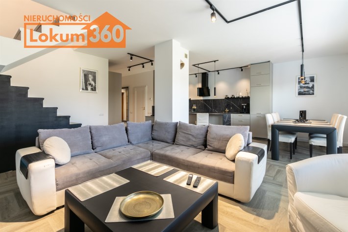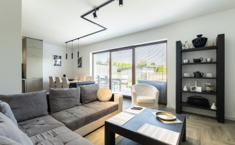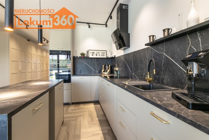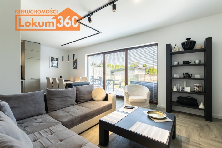 • przestronny salon z wyjściem na taras i ogród, połączony z kuchnią