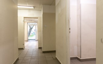 Był wynajmowany na sklep Żabka w związku z tym ściany w wewnątrz budynku zostały zaadoptowane pod funkcjonowanie tej działalności.