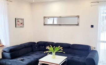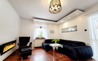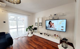 - Przytulny salon z którego przechodzimy na drewniany, zadaszony taras o powierzchni ok 30m2, który jest wspaniałym przedłużeniem salonu.