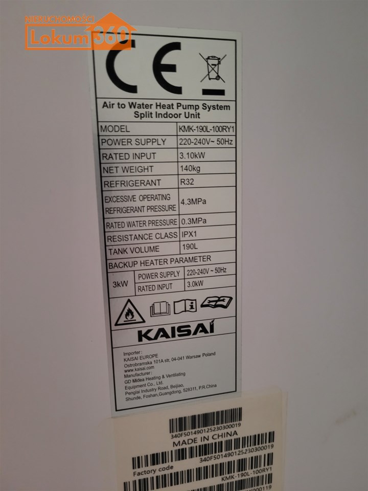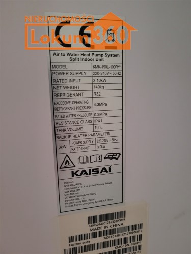 Dom ogrzewany pompą ciepła Kaisai o mocy10kW.