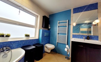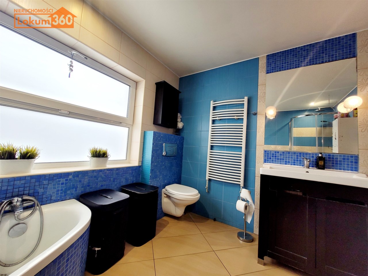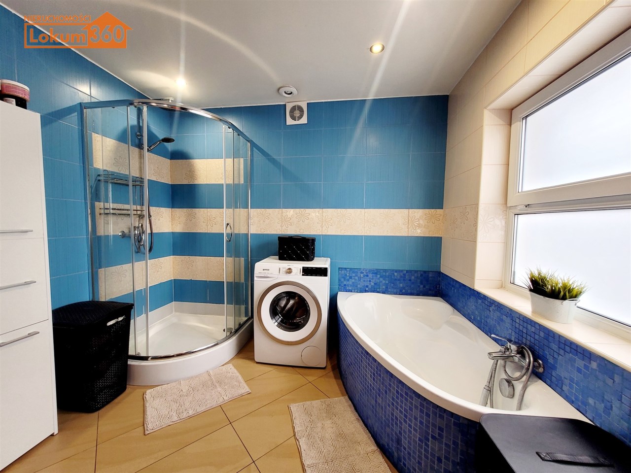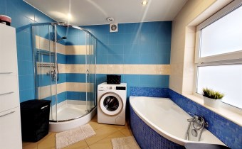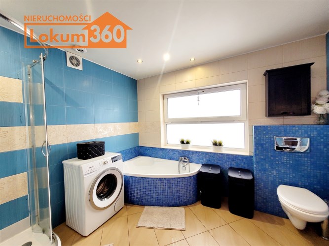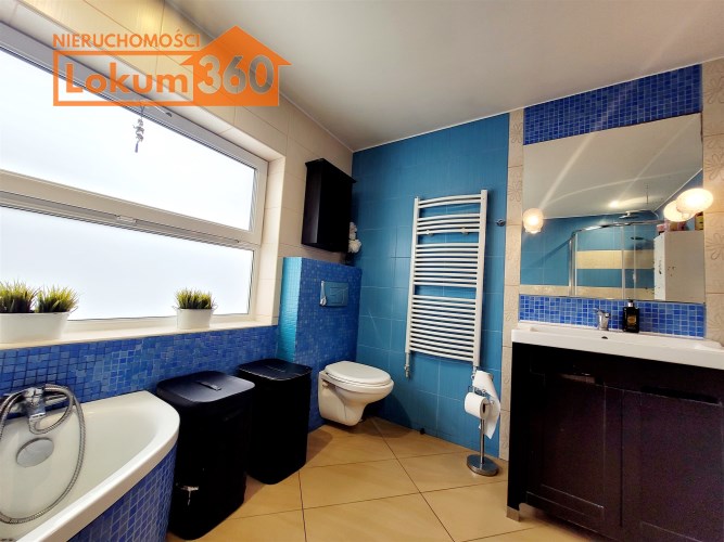 - Przestronna łazienka z oknem, wyposażona w wannę i prysznic, która może wymagać odświeżenia i aranżacji według własnego pomysłu.