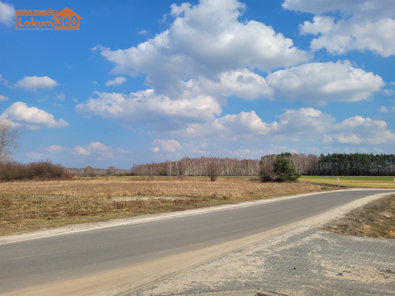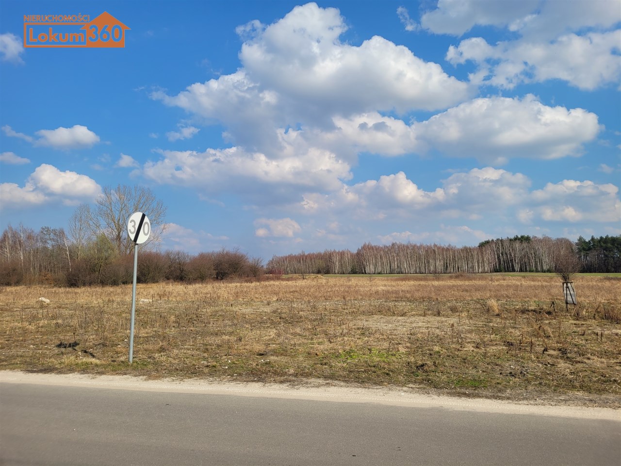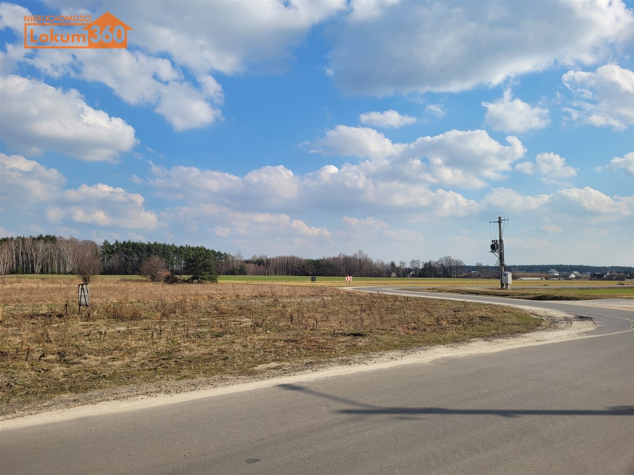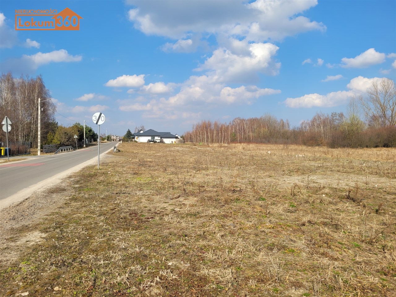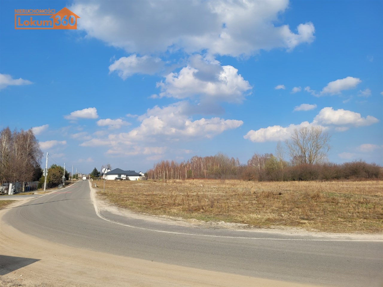 Droga asfaltowa z oświetleniem tuż przy działce, po drugiej stronie ulicy plac rekreacyjny z parkingiem.