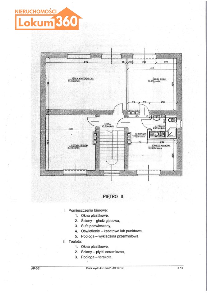 I PIĘTRO - 100 m - czynsz najmu 3000 zł + VAT, plus opłaty eksploatacyjne , kaucja 4500 zł