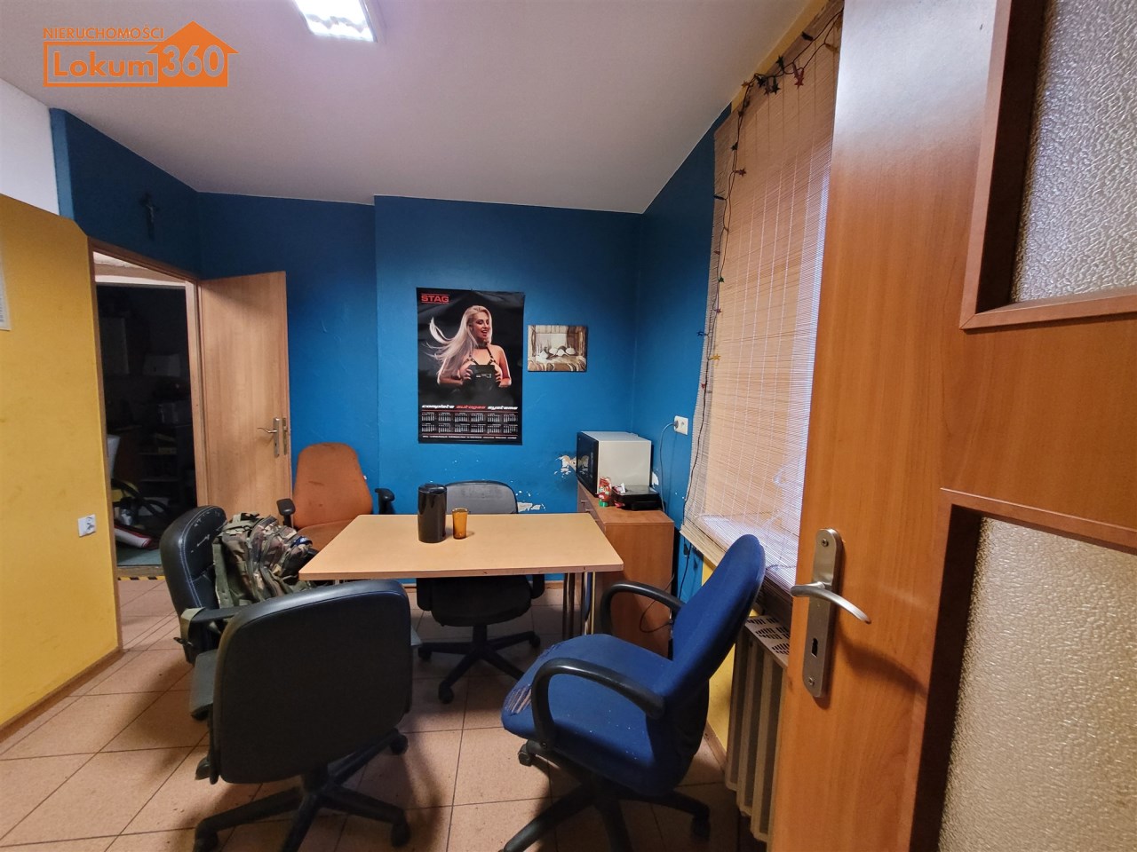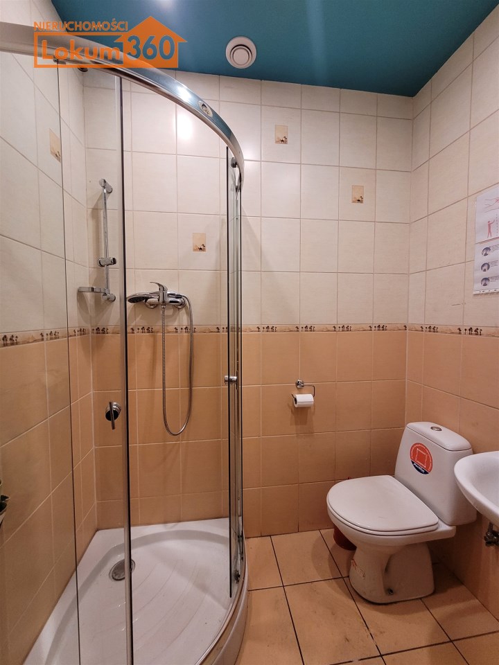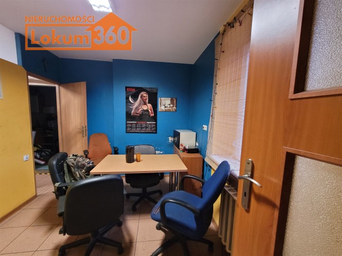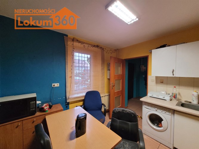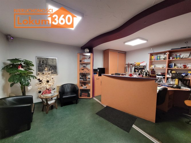 Obiekt składa się pomieszczenia warsztatowego o pow. 114m2 i wysokości 4,88m oraz zaplecza w postaci: biura, szatni, pomieszczenia socjalnego z kuchnią, dwóch magazynów, łazienki z prysznicem oraz ciągu komunikacyjnego o łącznej powierzchni około 200m2.
