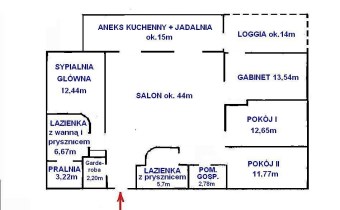 - ROZKŁAD: pełen rozkład, salon jest centralną częścią apartamentu z niego wejścia w zasadzie do wszystkich pomieszczeń,