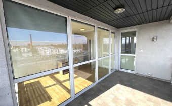 - GABINET: 13,54 m², przeszklone ściany od strony wschodniej i południowej, klimatyzator, wyjście na duży 14-metrowy taras typu loggia od strony płd-wsch,