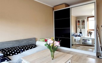 Salon pomieści wygodny narożnik oraz szafę. W korytarzu znajduje się szafa. Łazienka do generalnego remontu, wyposażona w kabinę prysznicową. Kompaktowa kuchnia to miejsce gdzie znajduje się zarówno kuchenka gazowa jak i pralka.