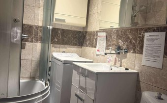 Wyposażenie łazienki lustro, natrysk, pralka, umywalka, WC