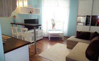 - POKÓJ: kanapa rozkładana, ława, komoda, szafa w zabudowie