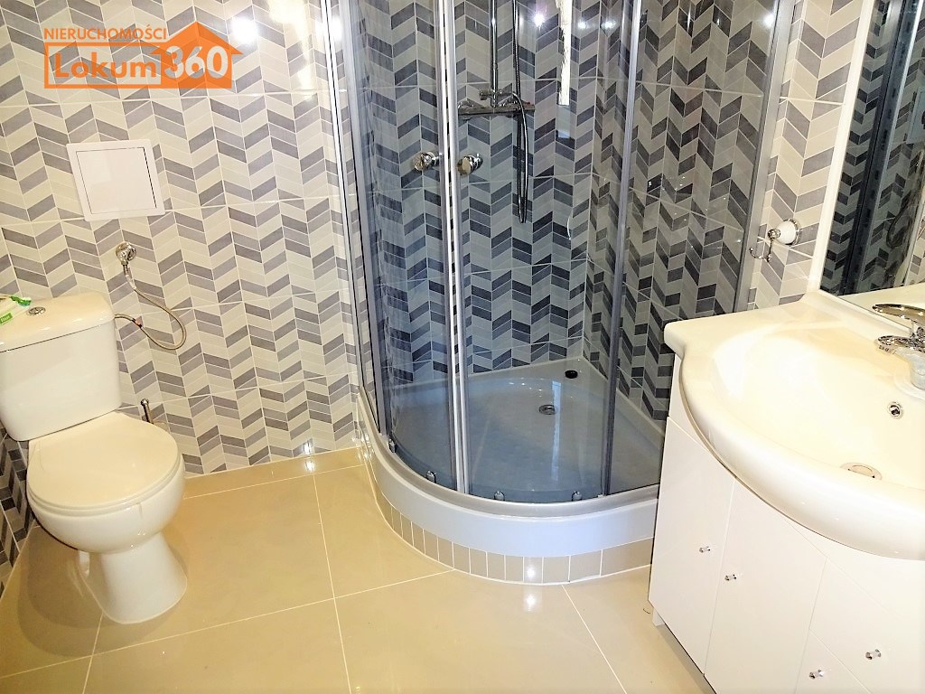 Wyposażenie łazienki kabina prysznicowa, pralka, umywalka, WC