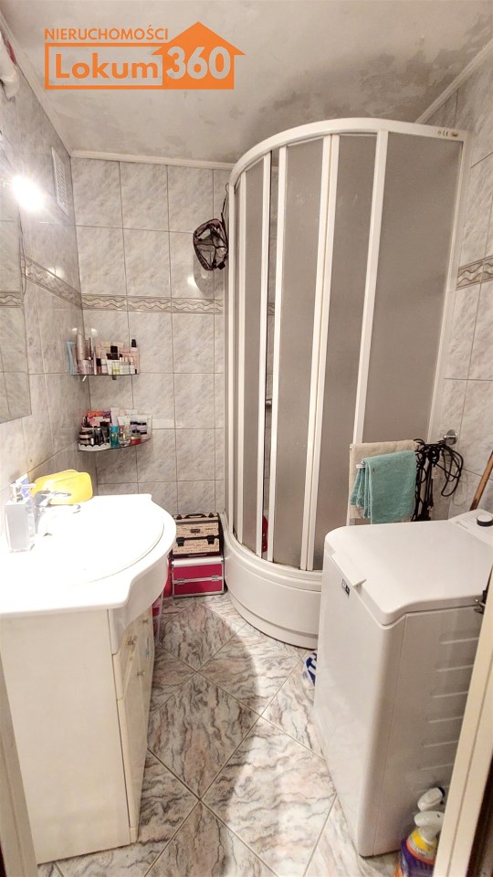 Łazienka- glazura terakota, kabina prysznicowa, umywalka.