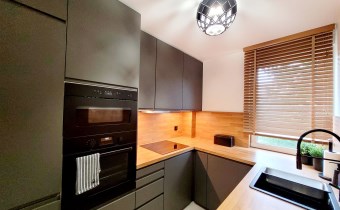 - KUCHNIA: podłoga panele, ściany gładzie, nowoczesne meble w zabudowie z piekarnikiem, dużą zmywarką, kuchenką mikrofalową, nowoczesną płytą gazową, okap;