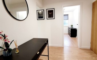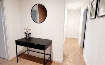 Mieszkanie urządzone i pomalowane w neutralnych, ponadczasowych kolorach dających poczucie przestrzeni i komfortu.