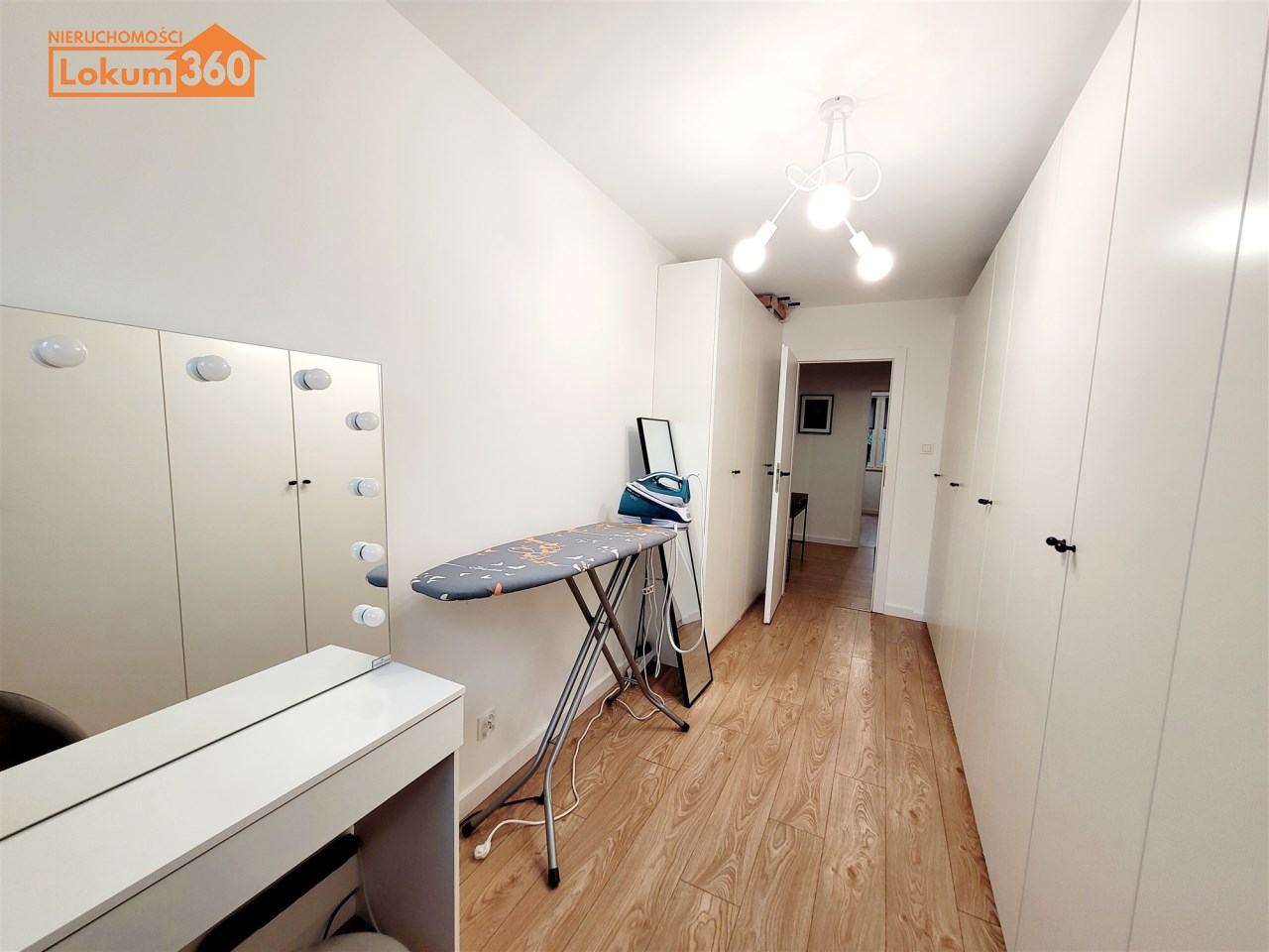 - POKÓJ/ GARDEROBA: podłoga panele, ściany i sufit gładzie, szafy w zabudowe na całej ścianie ( zostaną zabrane),