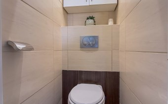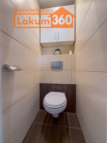Łazienka i toaleta są w nowoczesnej kolorystyce, praktycznie urządzone.