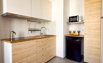 Aneksy kuchenne zostały całkowicie wyposażone w sprzęty bardzo dobrej klasy: zmywarkę, lodówkę, kuchenkę mikrofalową, płytę grzewczą oraz przedmioty codziennego użytku.