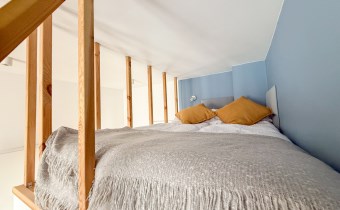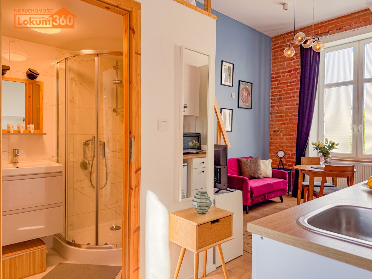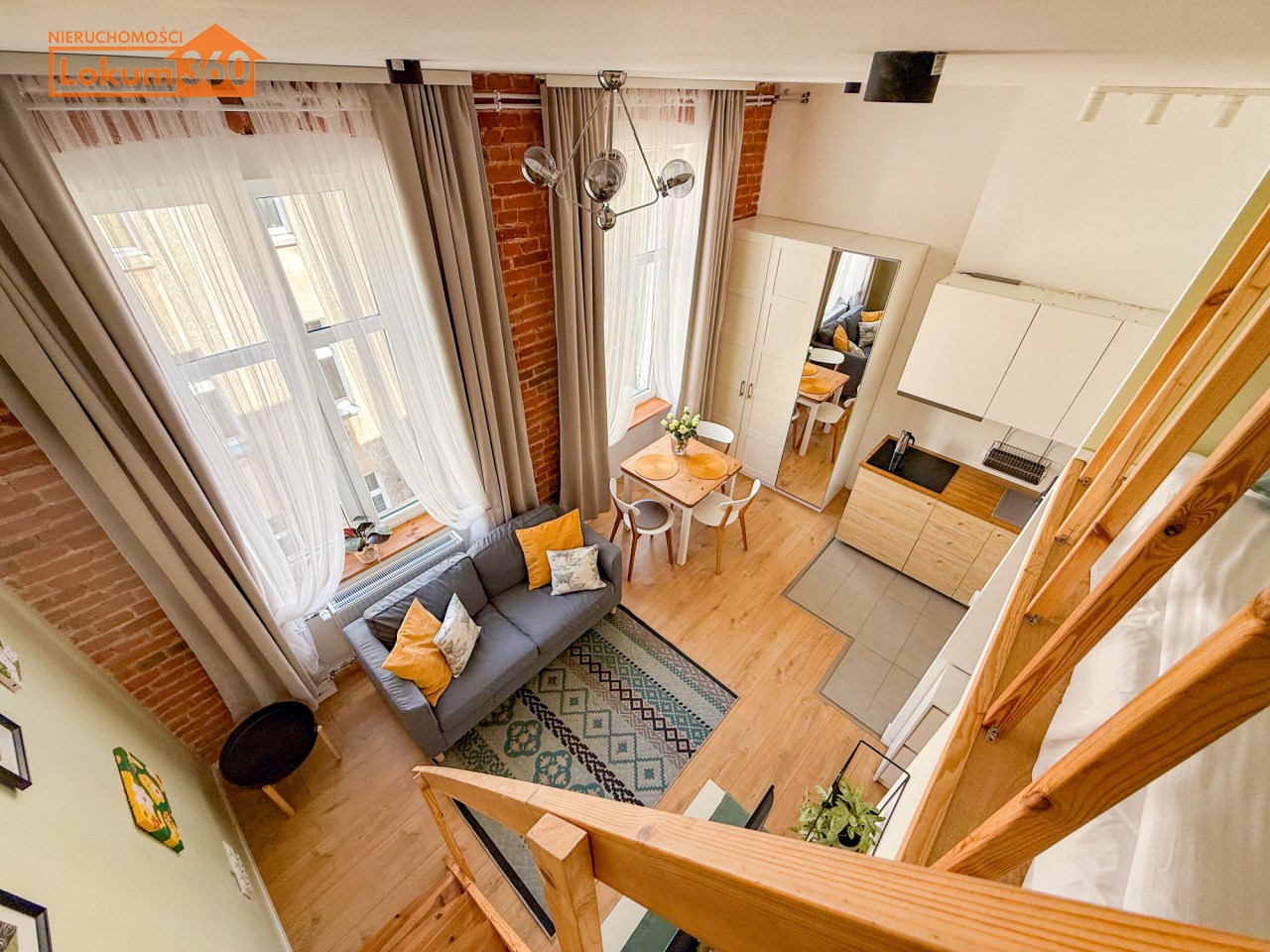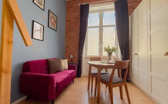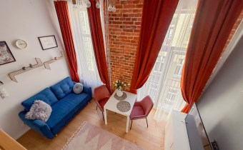 Odsłonięta cegła w każdym pomieszczeniu, oddaje łódzki kamieniczny i elegancki charakter. Wysokie przestrzenie pozwoliły na zaadaptowanie przestrzeni sypialnianej w postaci dość wygodnej antresoli w każdym z lokali.