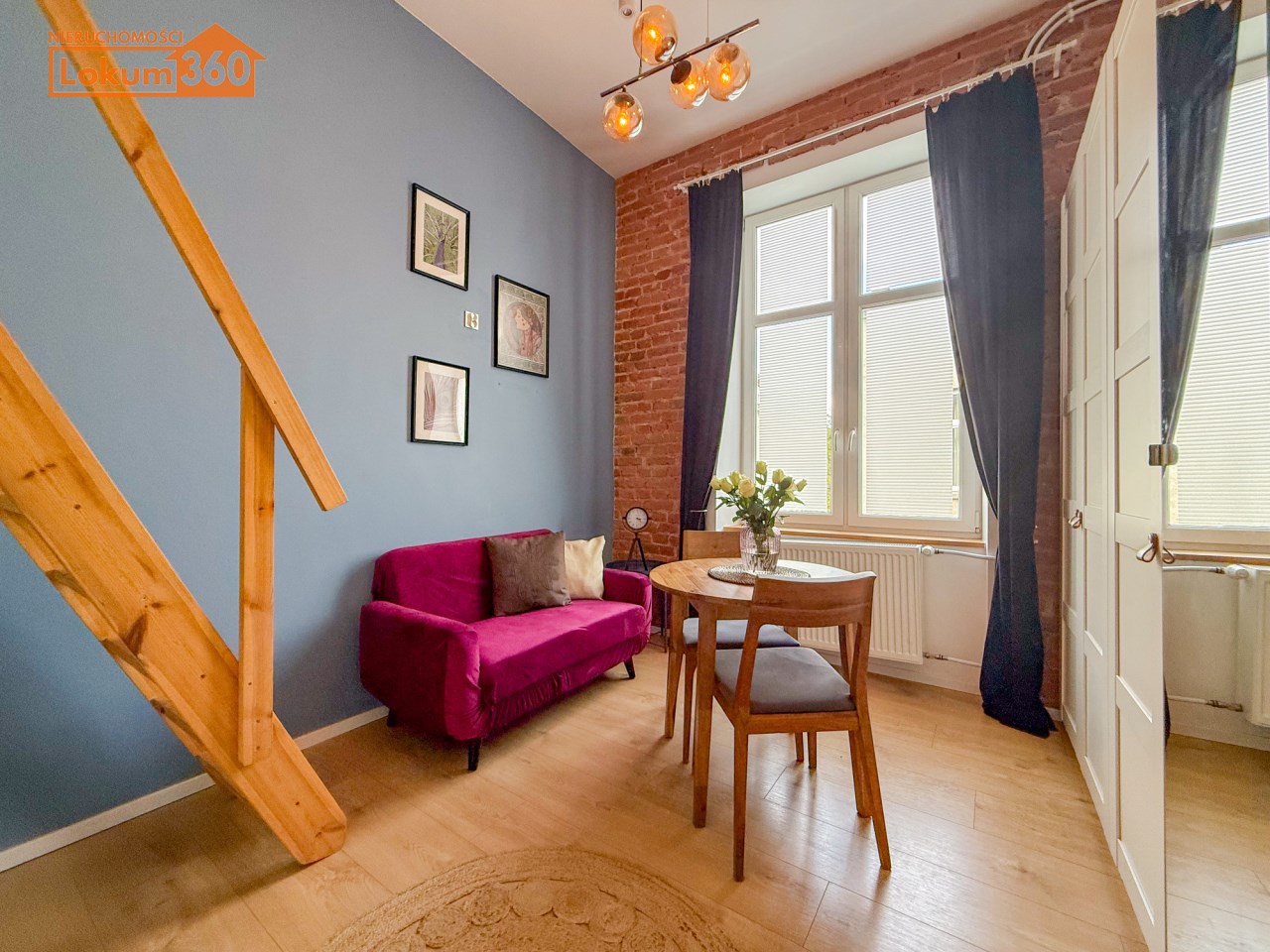 Całość została klimatycznie urządzona, wysokie okna dodają z pewnością wrażenie nieco większego metrażu.
