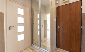 Mieszkanie zostało odmalowane w kolorach beżu, na podłogach leżą panele.