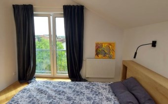 To wyjątkowe, bardzo komfortowo, gustownie i funkcjonalnie umeblowane mieszkanie, znajduje się w nowym budynku. Salon i dwie sypialnie z dużymi oknami balkonowymi, nowoczesna i urządzona we wszystkie sprzęty kuchnia, łazienka z natryskiem, przedpokój z dodatkowym miejscem do przechowywania zamiast szaf w garderobie.