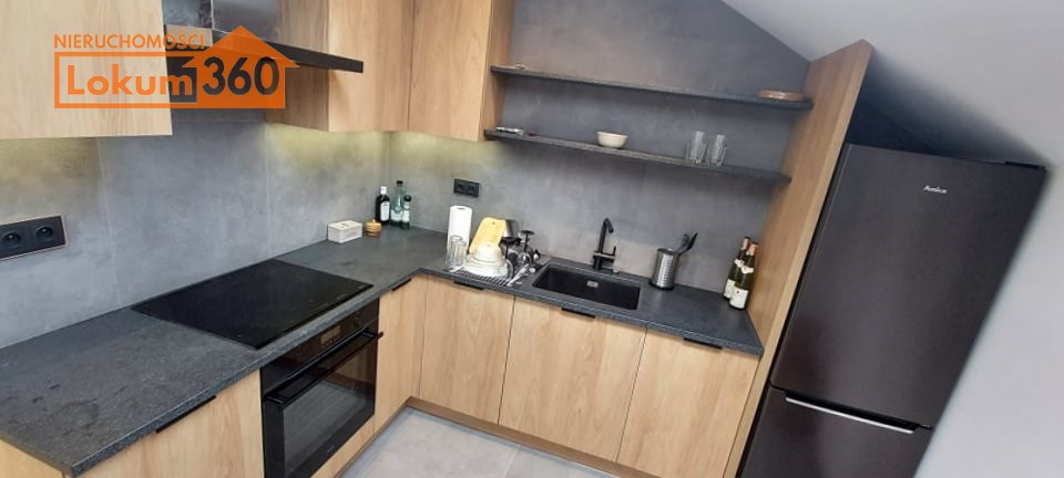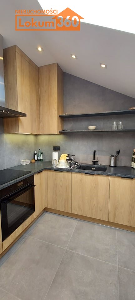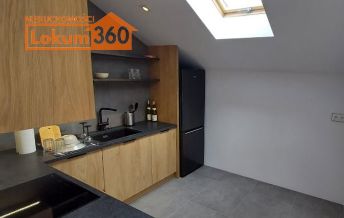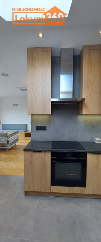 Meble i sprzęt AGD na wyposażeniu: zmywarka, lodówka z zamrażarką, płyta indukcyjna, piekarnik, czajnik, pralko-suszarka, telewizor, odkurzacz iRobot, zestaw nagłośnieniowy zabudowany w ścianach i suficie.
