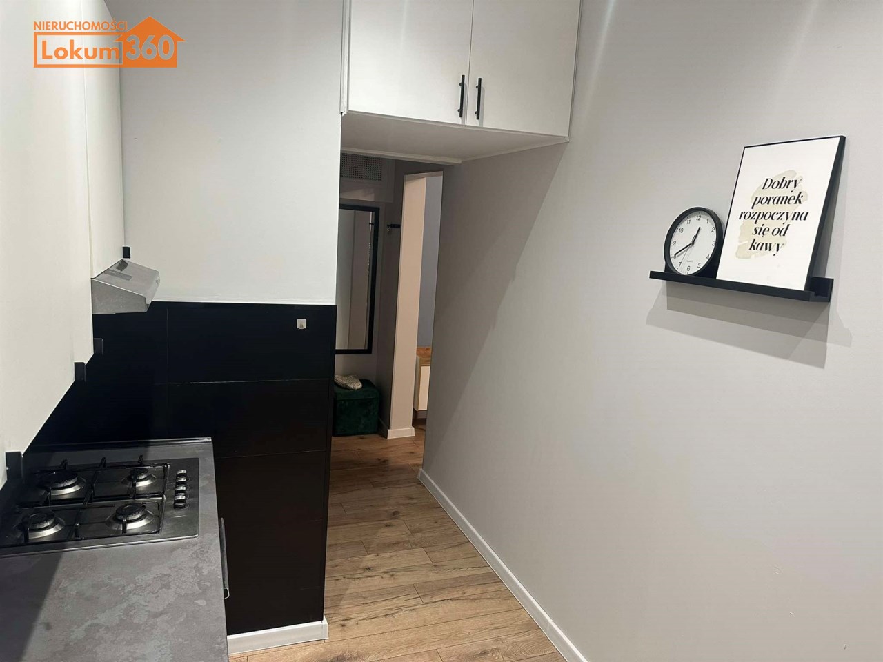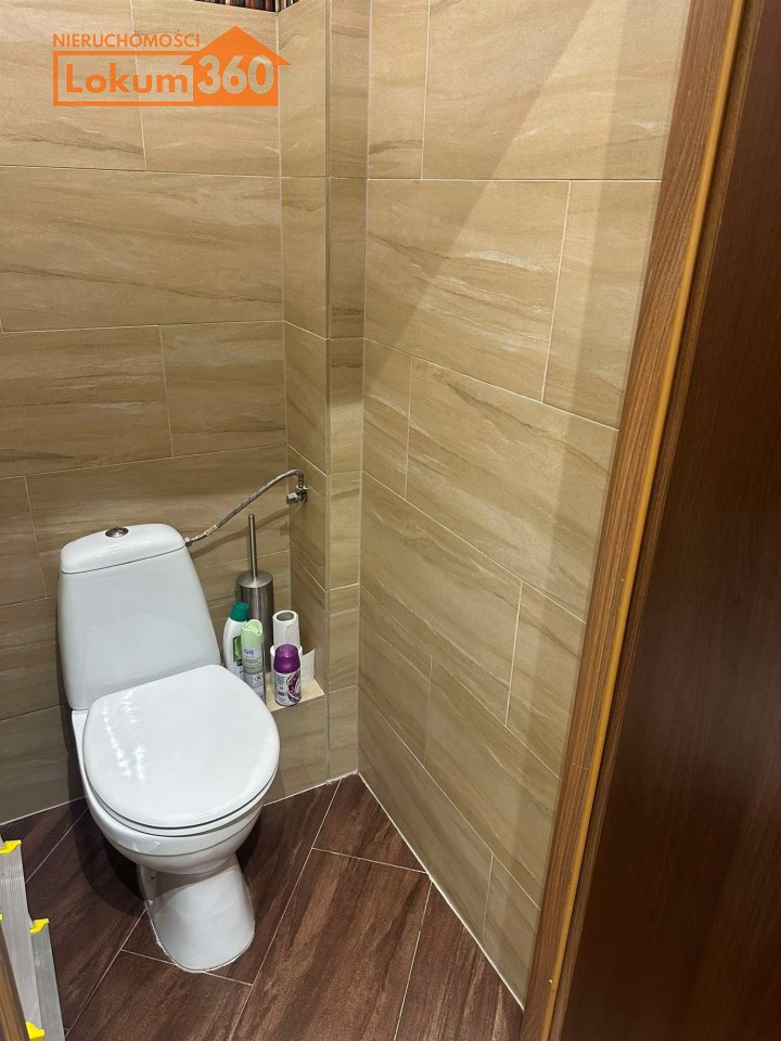 Z przedpokoju o pow 4m2 oddzielne wejścia do wc  o pow 1,2 ( glazura, terakota) oraz kuchni o pow 7,30 umeblowanej całkowicie ( zmywarka, lodówka, płyta oraz piekarnik)
