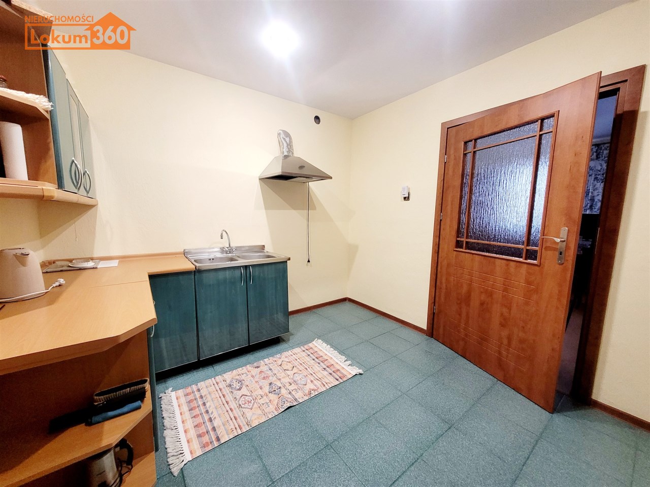 Kuchnia umeblowana z możliwością doposażenia w kuchenkę gazową i lodówkę, duży pokój do własnej aranżacji.