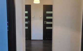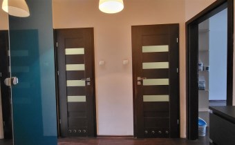 Składa się z pokoju dziennego z wyjściem na balkon, kuchnię widna z oknem, Dwie sypialnie, łazienka wyposażona w wannę osobno z WC. W kuchni i łazience glazura i terakota nowego typu. Na podłogach panele, ściany pokryte gładzią gipsową i farbą. Do mieszkania przynależy piwnica.