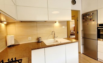 - kuchni w nowoczesnej zabudowie wyposażonej w zmywarkę, lodówkę, kuchenkę gazową, piekarnik,