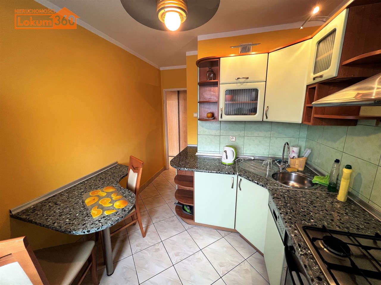 - KUCHNIA: meble w zabudowie, nowa lodówka z zamrażarką, zmywarka, płyta gazowa, piekarnik elektryczny, pochłaniacz zapachów, stolik w zabudowie, 2 krzesła,