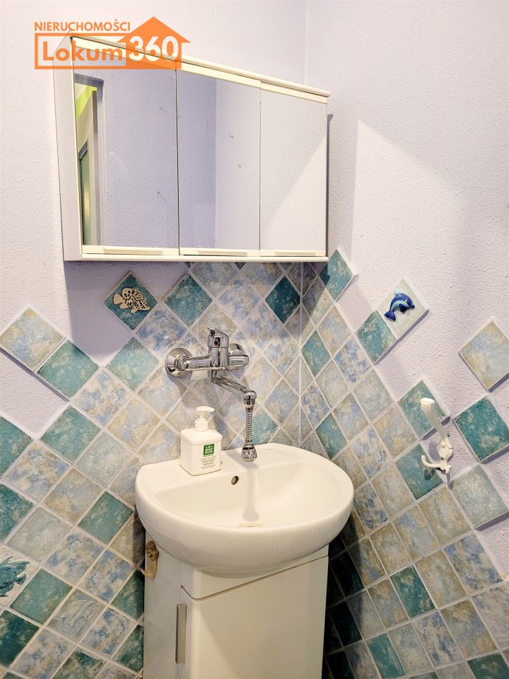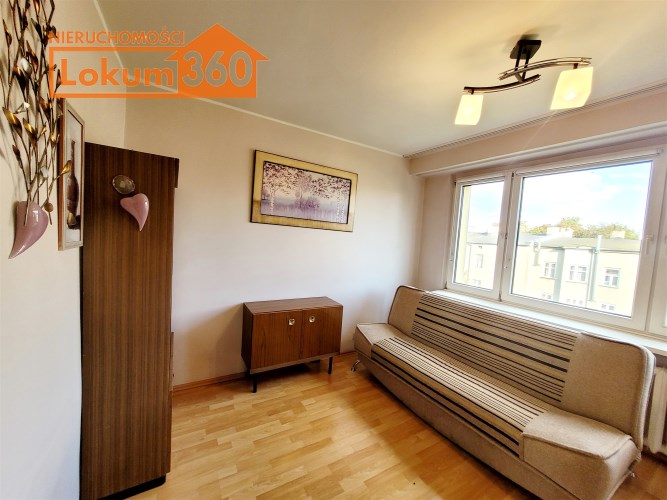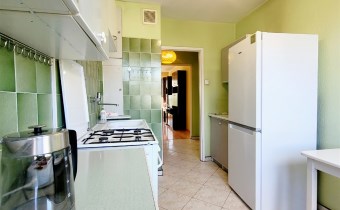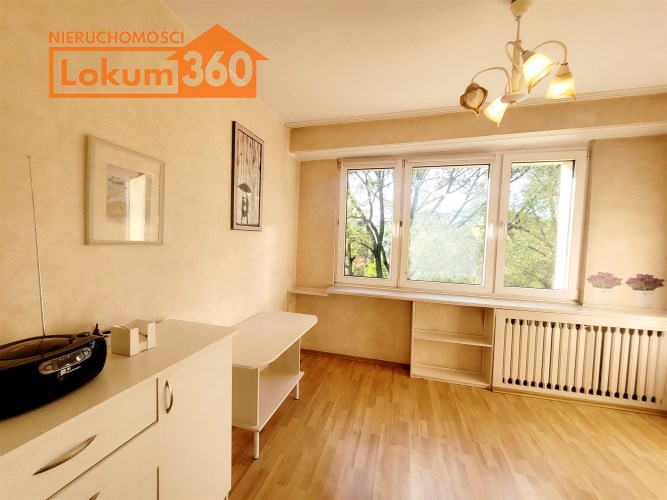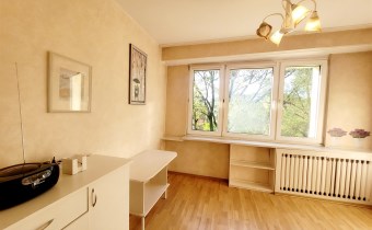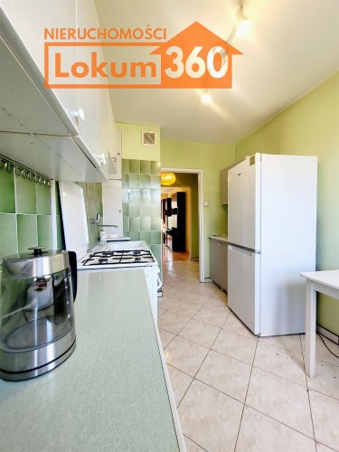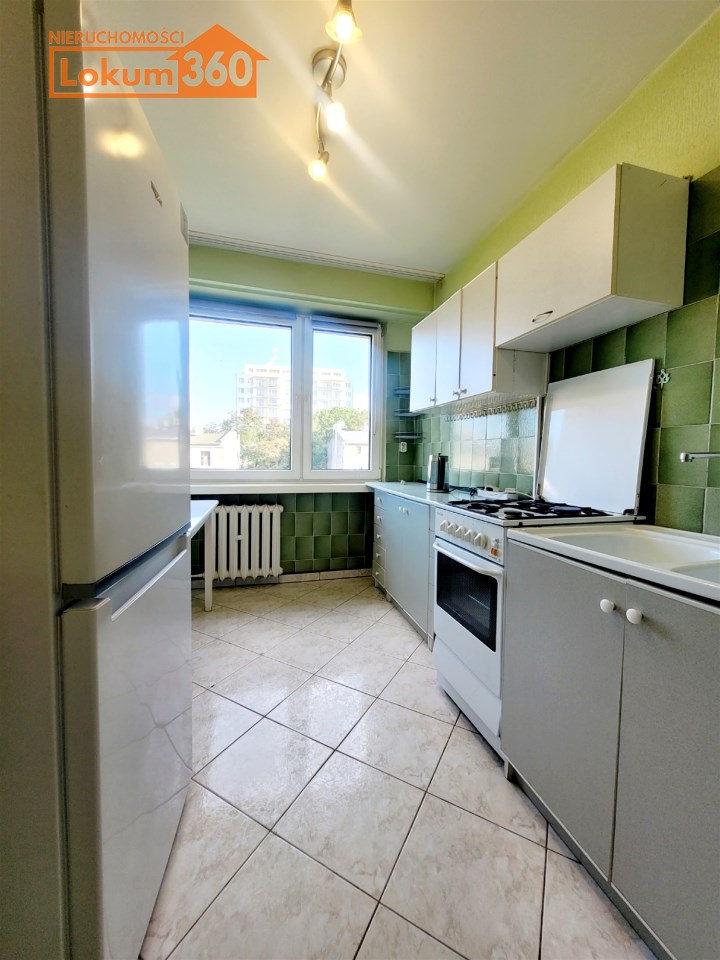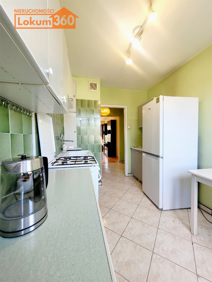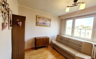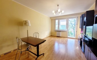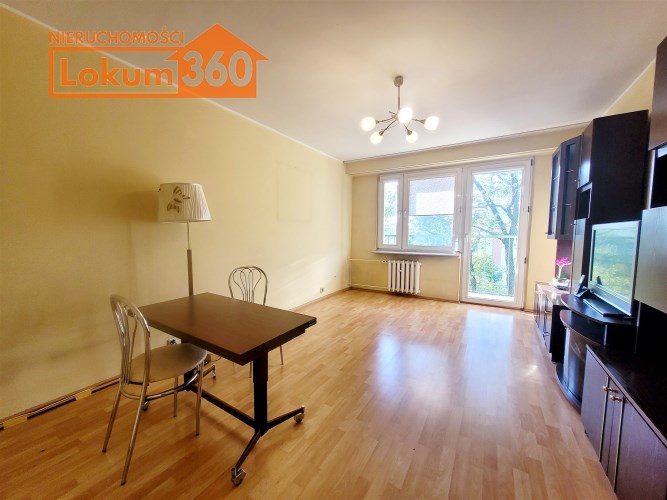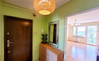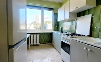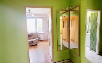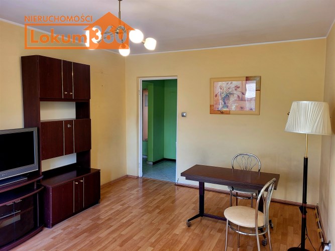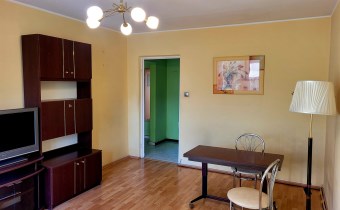 To mieszkanie usytuowane jest na 3 piętrze w niskim bloku bez windy. Jest ono częściowo umeblowane i wyposażone. Przestronna kuchnia z meblami, kuchenką gazową, lodówką. Pokoje do własnej aranżacji obecnie wyposażone w jedną kanapę, meblościankę, szafę, stół i komodę. Łazienka z kabiną prysznicową, umywalką i pralką. Toaleta z umywalką. Przedpokój z szafą.