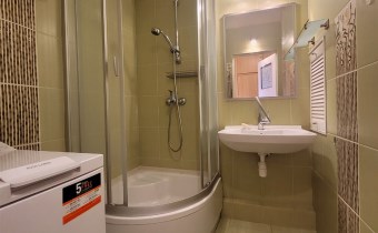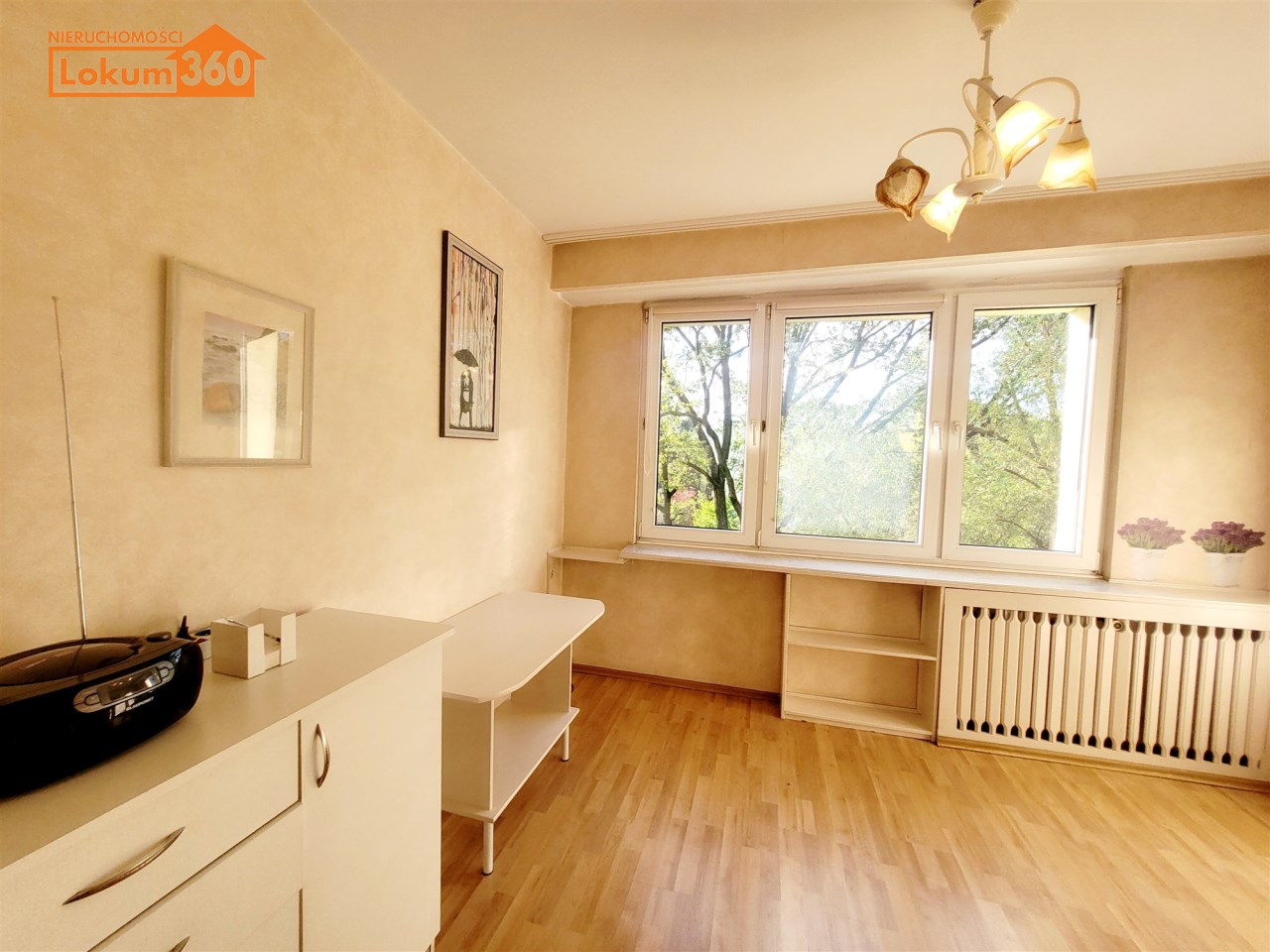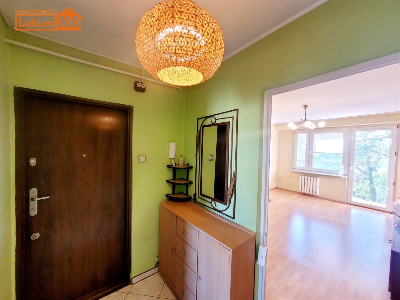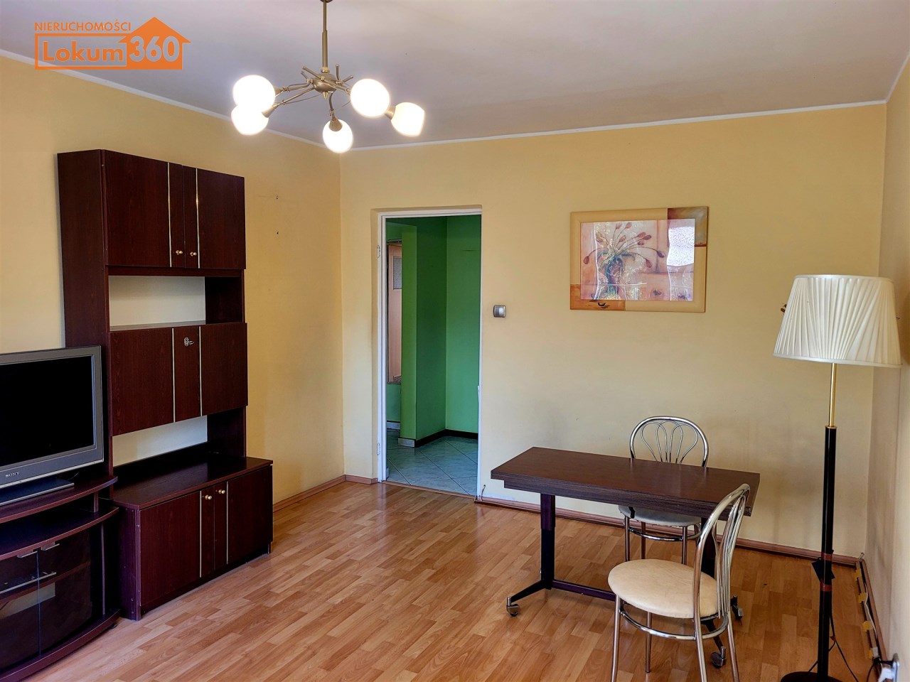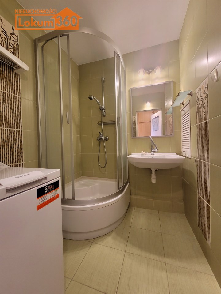 To mieszkanie usytuowane jest na 3 piętrze w niskim bloku bez windy. Jest ono częściowo umeblowane i wyposażone. Przestronna kuchnia z meblami, kuchenką gazową, lodówką. Pokoje do własnej aranżacji obecnie wyposażone w jedną kanapę, meblościankę, szafę, stół i komodę. Łazienka z kabiną prysznicową, umywalką i pralką. Toaleta z umywalką. Przedpokój z szafą.