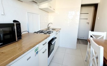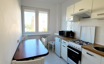 Mieszkanie wyposażone kompleksowo w sprzęty AGD (pralka, lodówka, kuchenka, odkurzacz, żelazko) oraz podstawowe meble.
