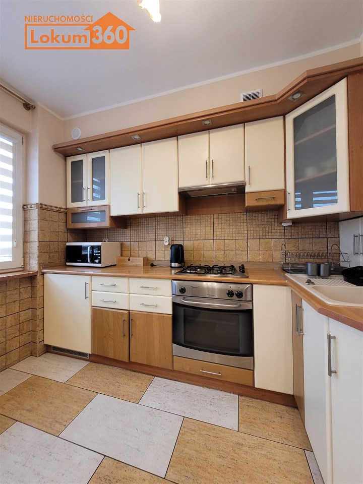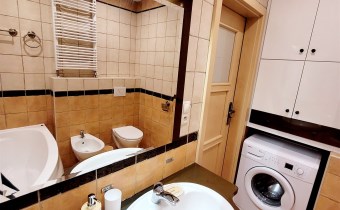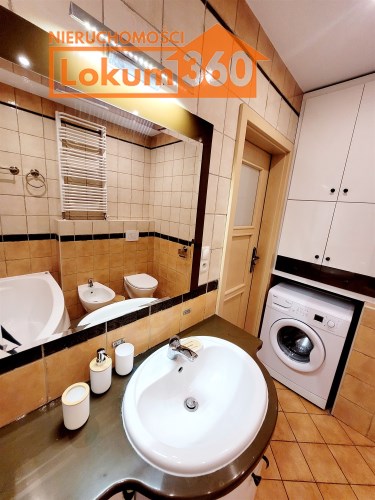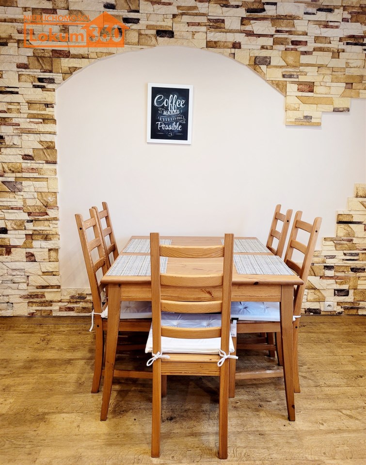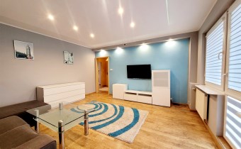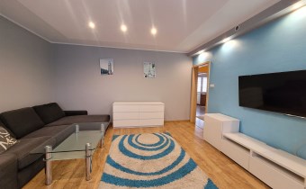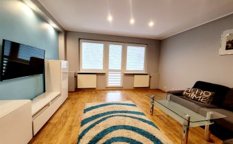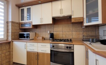 Mieszkanie urządzone i wyposażone w niezbędne sprzęty (kuchenka, lodówka, pralka) oraz wygodne i praktyczne meble.