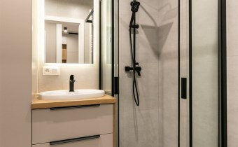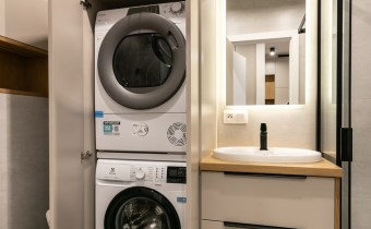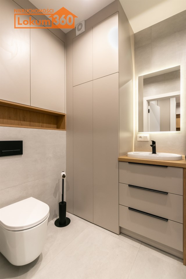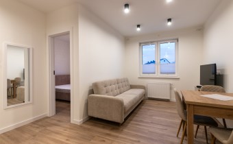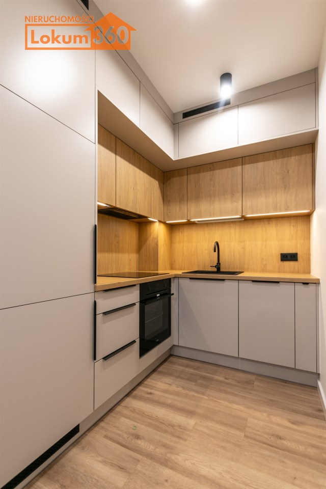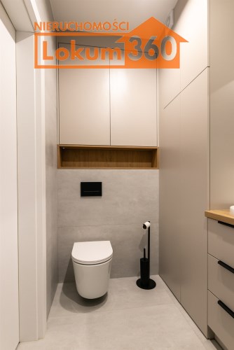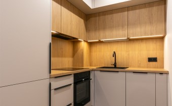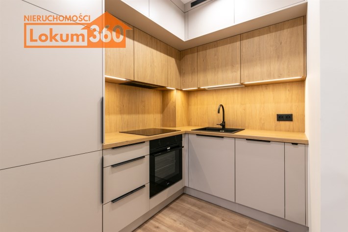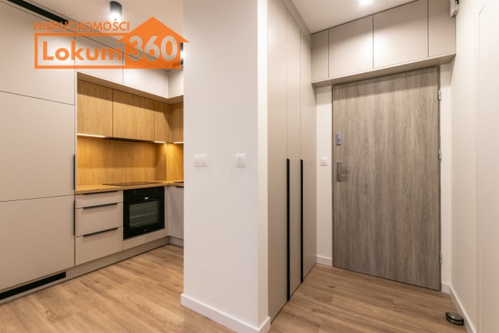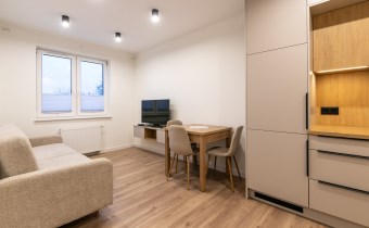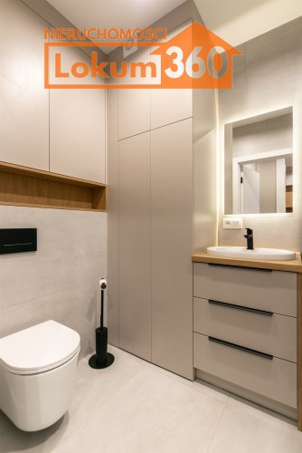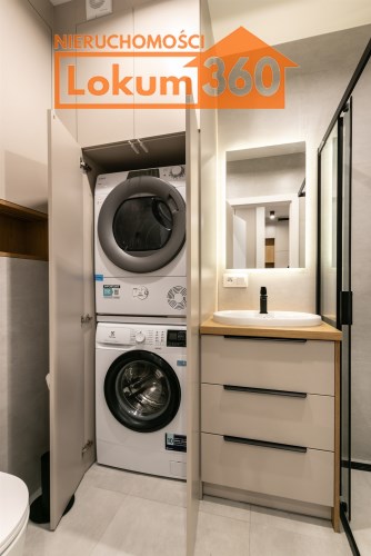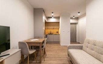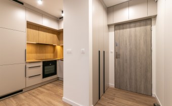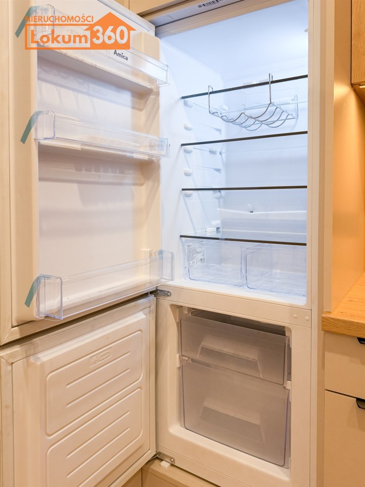 Mieszkanie ma wyposażoną kuchnię w meble w zabudowie wraz ze sprzętem AGD: lodówko-zamrażarka, piekarnik, kuchnia indukcyjna. Łazienka w pełni wyposażona.