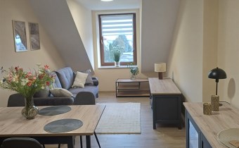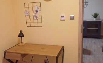 Mieszkanie wyposażone w zestaw mebli kuchennych z urządzeniami(lodówka, zamrażarka, kuchnia z piekarnikiem , zmywarka) +stół z krzesłami, komoda. pokoje umeblowane łóżka, szafy, biuro.